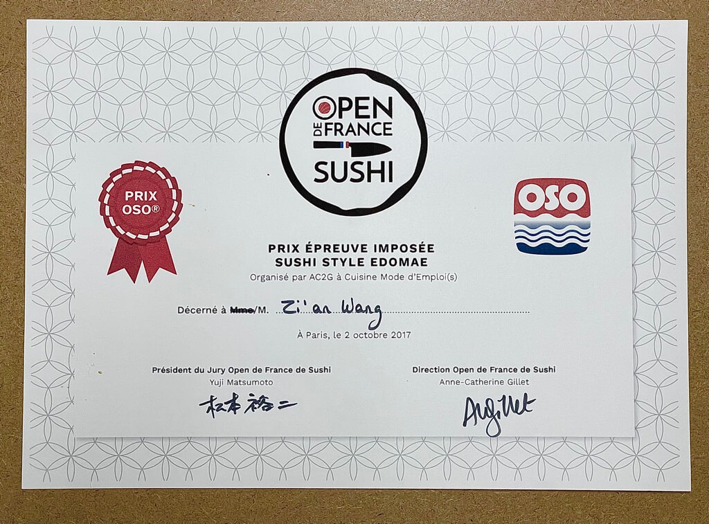 1er prix 2017 de l'Open sushi France